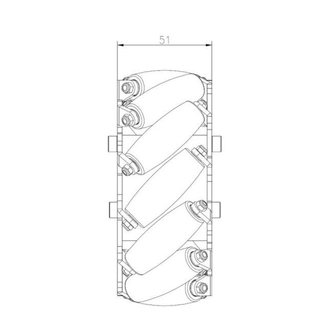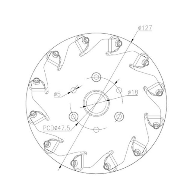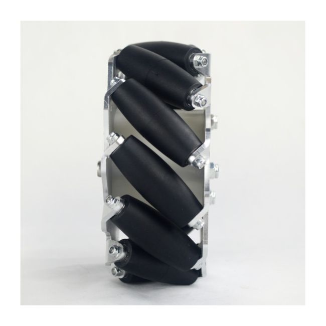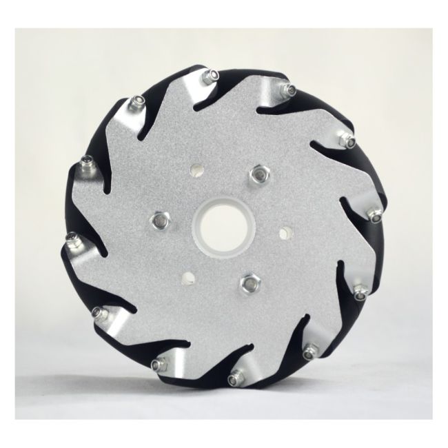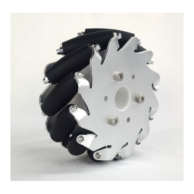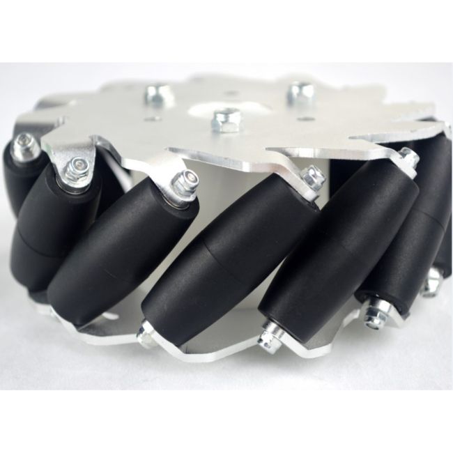 127mm (5 inch)Mecanum wheel is comprised of 12 rollers. It is driven independently. Mecanum wheel can be capable of moving in any direction,no need to change the directions the wheel spin. Every of the four wheels contain a series of rollers which have an axis of rotation at 45° to the plane of the wheel in a plane parallel to the axis of otation of the wheel attached to its circumference.