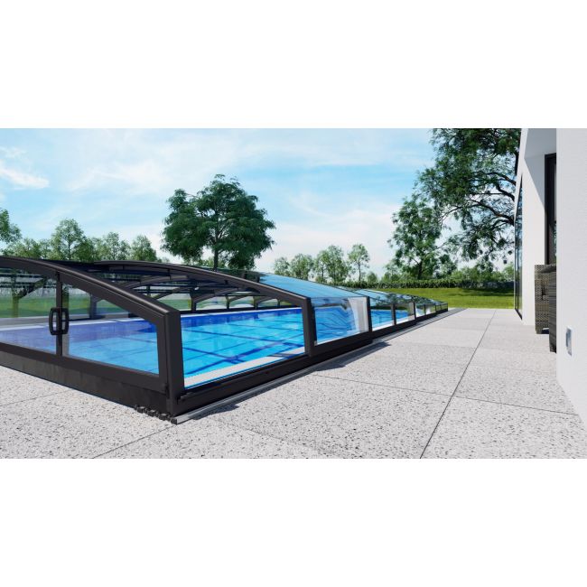 De meest complete set met zwembadtechnologie, skimmer en Casablanca Infinity overkapping voorzien van polycarbonaat helder glas.