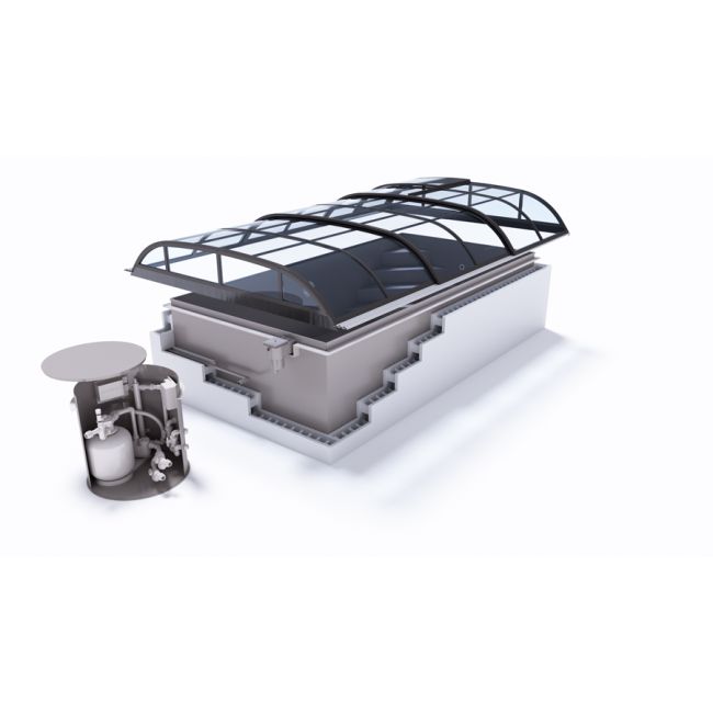 De meest complete set met zwembadtechnologie, skimmer en Dallas Clear overkapping voorzien van polycarbonaat helder glas.