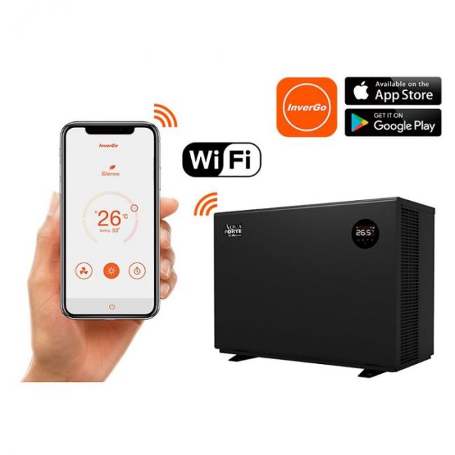 Beheer uw warmtepomp: verhoog de temperatuur, begrijp hoe het werkt en kies het type modus dat u wilt gebruiken. Altijd binnen handbereik dankzij de Wi-Fi-technologie van dit Aquaforte-model. Door hem gewoon aan te sluiten, kunt u hem overal bedienen en programmeren.