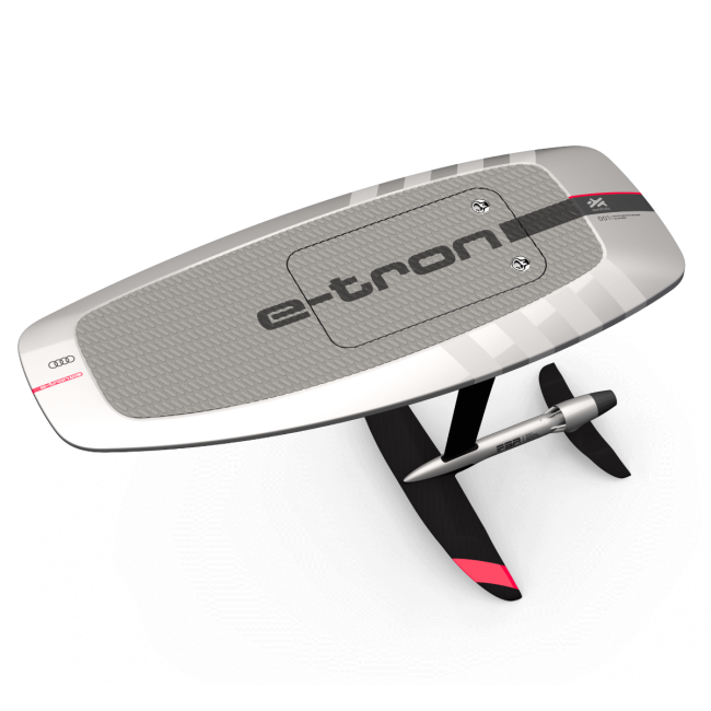 De AUDI e-tron eFoil maakt gebruik van de vooruitgang in lithiumbatterij technologie en draadloze communicatie om een ervaring te creëren die het gevoel van surfen combineert met dat van vliegen en snowboarden. Het resultaat is een krachtige, stabiele en verantwoordelijke rit met een maximale snelheid van 50 km p/u over elk water dat niet afhankelijk is van wind of golven.Ervaar de nieuwste grens van surfen met de AUDO e-tron - eFoil de originele elektrische draagvleugel surfplank en 's werelds kleinste waterscooter, nu in een meer betaalbare carbon behuizing met twee batterijopties.