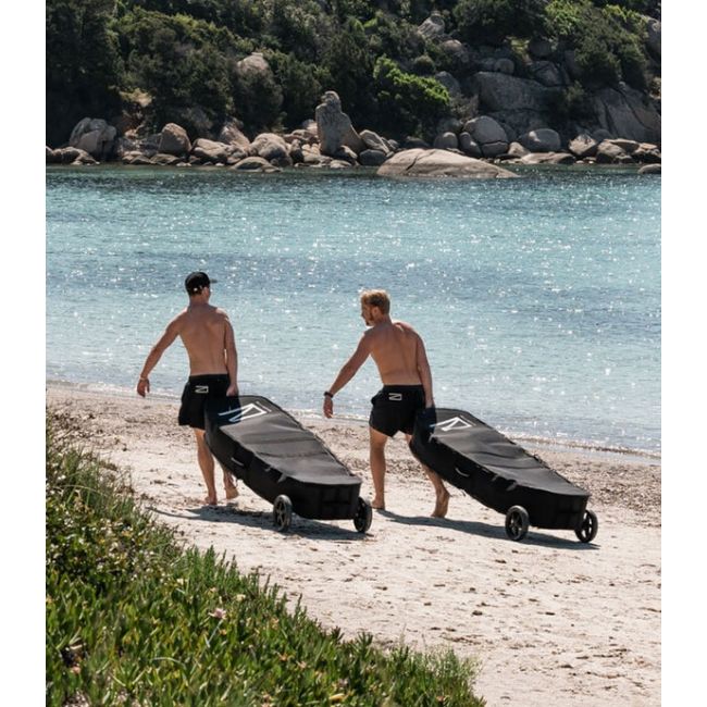 De boardtas wordt compleet geleverd met inzetstukken, een opladertas en een set afneembare wielen. Alles wat je nodig hebt, inclusief de oplader, past op één plek.