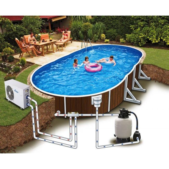 Dit Azuro VAR 405 DL houtkleurig ovaalvormig zwembad heeft een standaardformaat met een afmeting van 730x370 cm en een hoogte van 120 cm, ideaal om in de zomer met familie of vrienden te genieten van een lekkere duik. Geniet van een middagje lachen en onbeperkt waterspelletjes in deze Azuro VAR 405 Deluxe zwembad.