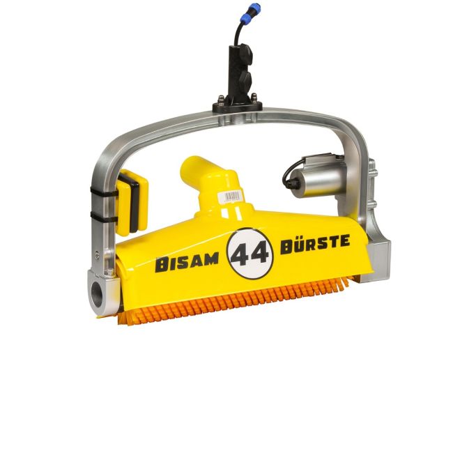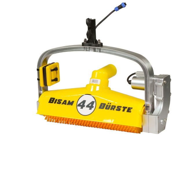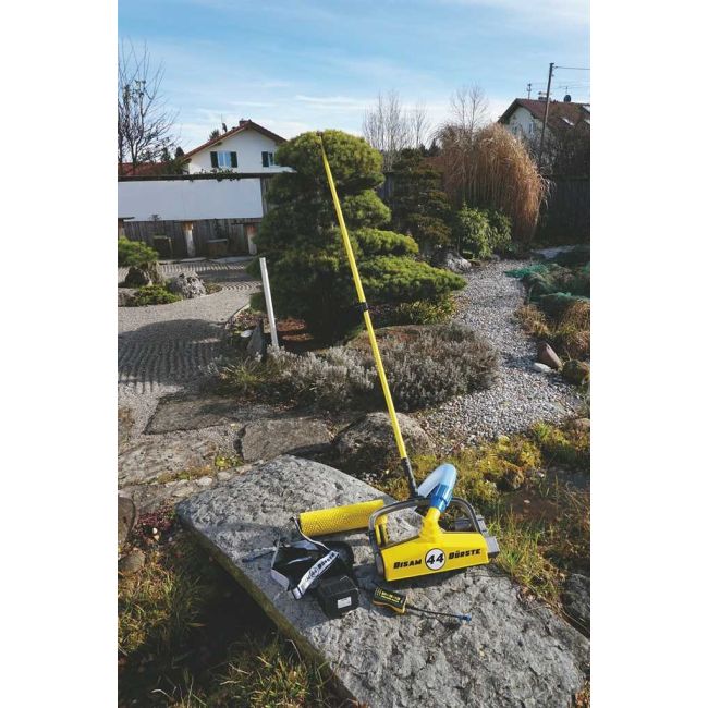 BISAM 44 BORSTEL met telescoop steel GRP uitschuifbaar 2,5 - 5,0 m, schakeleenheid, 2 x Li-Ion accuset evenals een gele, zachte borstel en een rode harde borstel.