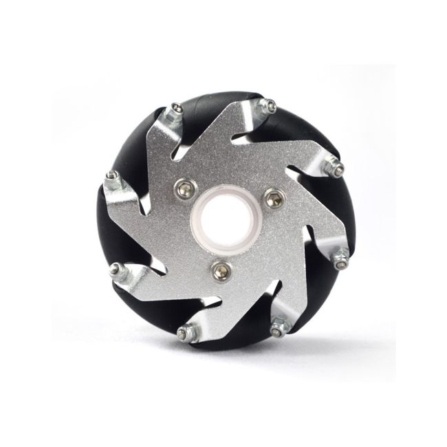 The 60mm aluminum mecanum wheel is the smallest size mecanum wheel in all of our mecanum wheels. It is a LEGO compatible mecanum wheel, it comes with an NXT compatible hub and an axle centre hub for the arduino motors and wheels. You can also use universal hubs to connect the wheels and motor. It will give you more choice, each wheel is comprised of 8 rubber rollers, these axles and rollers are sandwiched between two aluminum plates, use these mecanum wheels on your robot, it can be able to forward/backward movement, but also side to sie. Using rollers set on 45 degree rotational axis parallel to the mai rotational axis of the wheel, all of you need to do is to add your drive motors, controller boars and batteries.