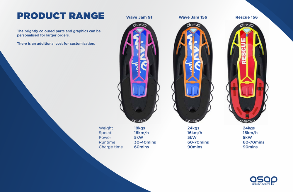 Deze zomer is er een nieuw kind in de stad en hun Wave Jam elektrische jetboards maken booteigenaren enthousiast. De Britse ingenieurs van ASAP hebben een nieuw elektrisch jetboard ontwikkeld waarop je ligt en door het water scheert- wat erg populair is onder gezinnen en booteigenaren.