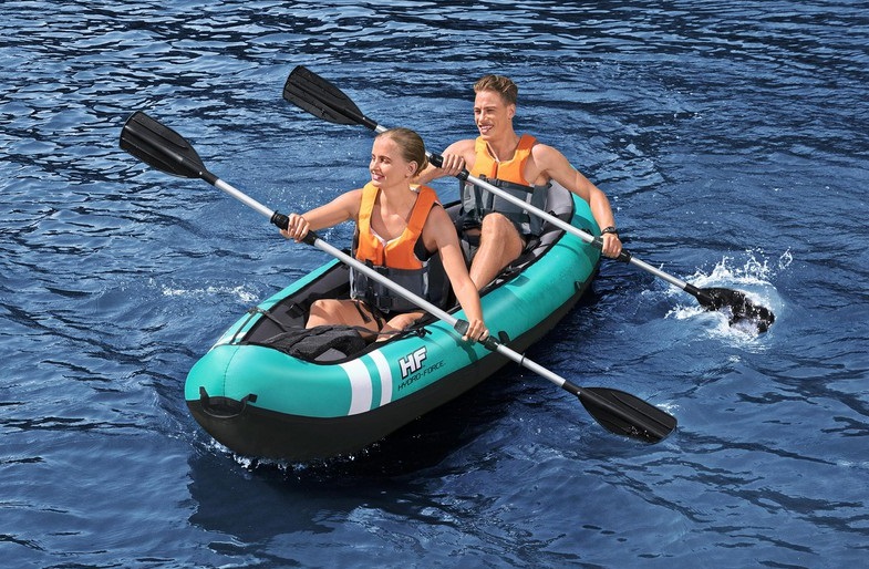 De Bestway Hydro Force Ventura is de sportiefste opblaasbare kajak voor 2 personen en heeft een aerodynamisch ontwerp, comfortabele stoelen en beschikt ook over een opblaasbare bodem gemaakt van zwaar PVC-materiaal.