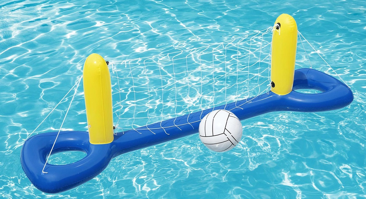 Dit opblaasbare volleybalnet zal uw zwembadervaring nog meer verbeteren. Het is zeer eenvoudig op te blazen. Door zijn grootte (2,44m lang) is het geschikt voor zwembaden met een groot zwemoppervlak. Het net is gemaakt van nylon en de opblaasbare structuur van vinyl met een dikte van 24 cm, dus het is zeer resistent. Dit net wordt geleverd met een bal, zodat u het spel kunt beginnen zodra de installatie klaar is.