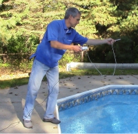 The LeakTrac 2400 finds leaks by putting a small electrical charge into the pool water, then tracking the flow of electricity as it makes connections to the ground through conductive penetrations in the liner. This technology is effective on any water containing vessel with an electrically insulating shell (i.e. vinyl, fiberglass, etc.) Now on its 4th version, this industry staple has been innovated and improved over the past 30 years and now features a wireless connection and digital controls. |