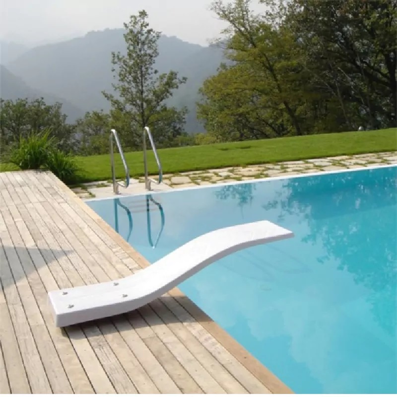 Brede flexibele duikplank, gemaakt van polyesterhars en glasvezel. Onaangetast door UV-stralen en weersinvloeden.