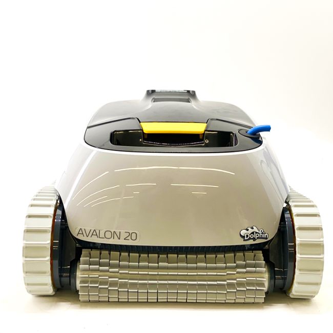 Dit demomodel Dolphin Avalon 20 zwembadrobot is een alternatief voor "automatische bodemzuigers" die werken op de zuigkracht van de zwembadpomp. Deze zwembadrobot is een kleine, betaalbare en eenvoudig te onderhouden robot met uitstekende schoonmaakresultaten voor de bodem en de wanden.