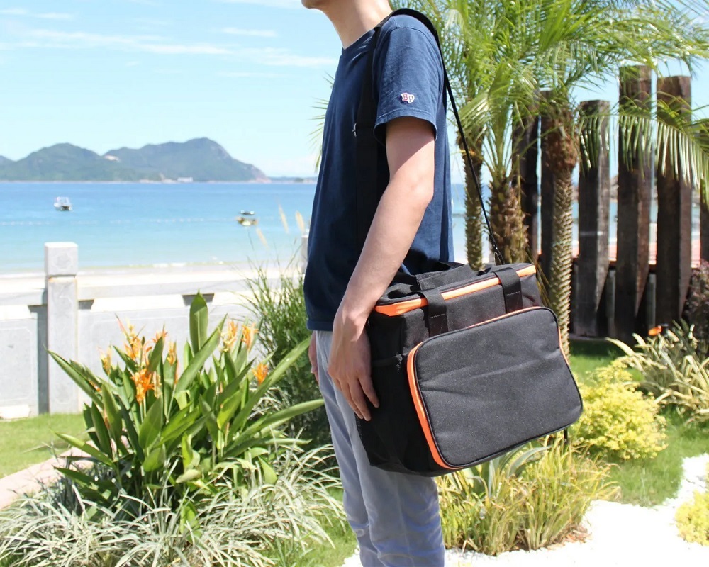 Deze draagtas heeft een gewatteerd handvat en een verstelbare en afneembare schouderriem, die met de hand of schouder kan worden gedragen. Je neemt de draagbare powerstation gemakkelijk mee van huis naar buiten.