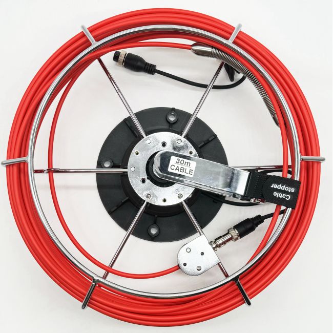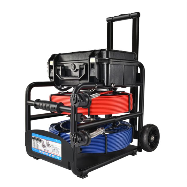 Dit is een klassieke afvoer-/leidinginspectiecamera die wordt geleverd met een dubbele mini-camerakop van 14 mm en 23mm, een 7-inch LCD-monitor met DVR, een tweetal kabelhaspels van 30 meter die zelf draaibaar is, een robuuste koffer waarin alle onderdelen zijn inbegrepen enz.