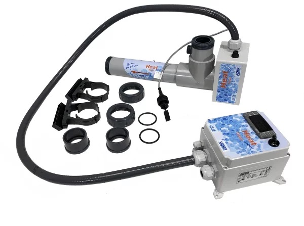 Deze Heat Pool zwembadverwarming bestaat uit een EOVTi 6 kW heater met een veiligheidsstroomklep, aangevuld met een externe regeling met een digitale thermostaat en contactor.