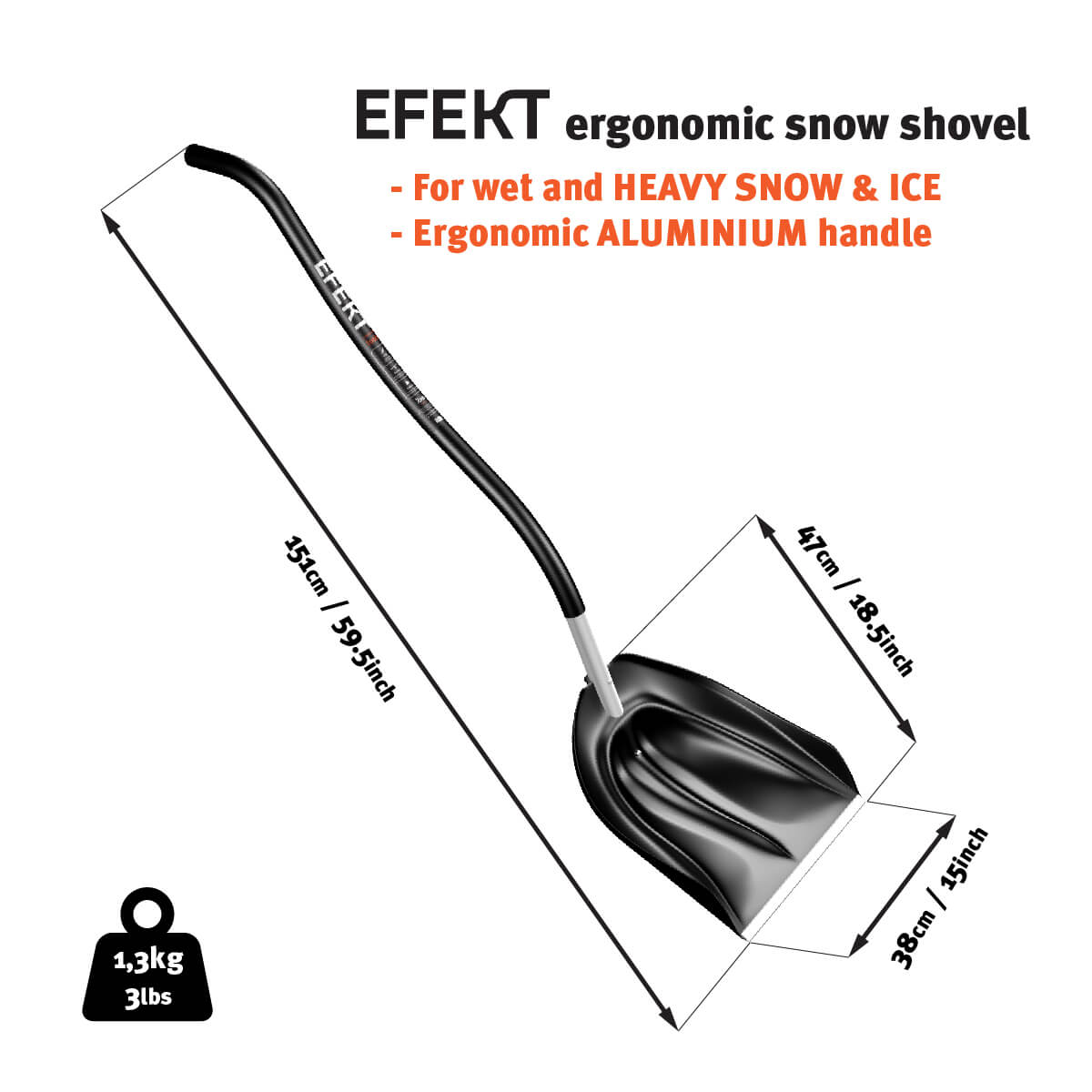 Deze ergonomische sneeuwschep - Efekt PRO e38 is een zeer wendbare en duurzame sneeuwschep. Het maakt het mogelijk om sneller, efficiënter en vooral veiliger door zijn ergonomische ontwerp sneeuw te verwijderen.