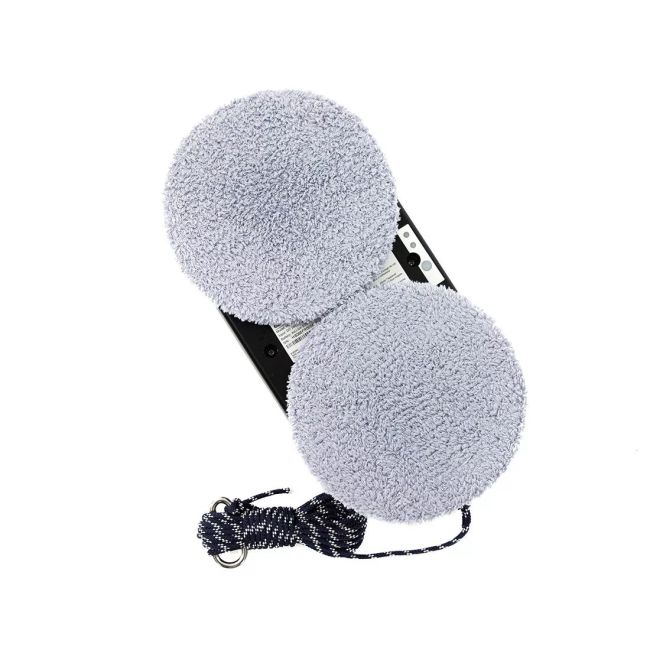Tijdens het reinigingsproces wordt een fijne spuitnevel op het oppervlak aangebracht. Samen met zijn zigzagbeweging en roterende pads verwijdert de raamrobot op betrouwbare wijze verontreinigingen uit het raam.