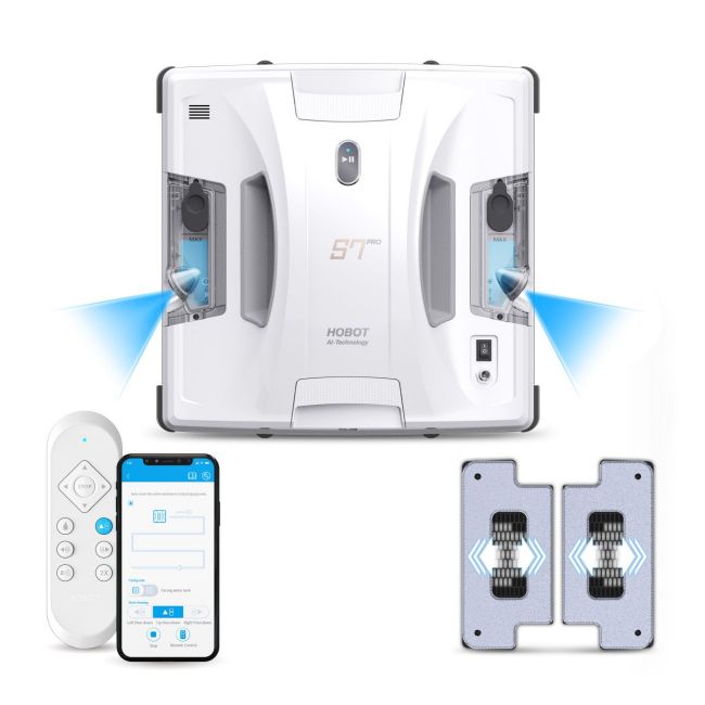 De Hobot S7 PRO raamrobot is een ideale huishoudrobot voor ingelijste en frameloze glazen oppervlakken. Met ingebouwde sensoren detecteert de robot het einde van oppervlakken en vergrendelt daarom niet.