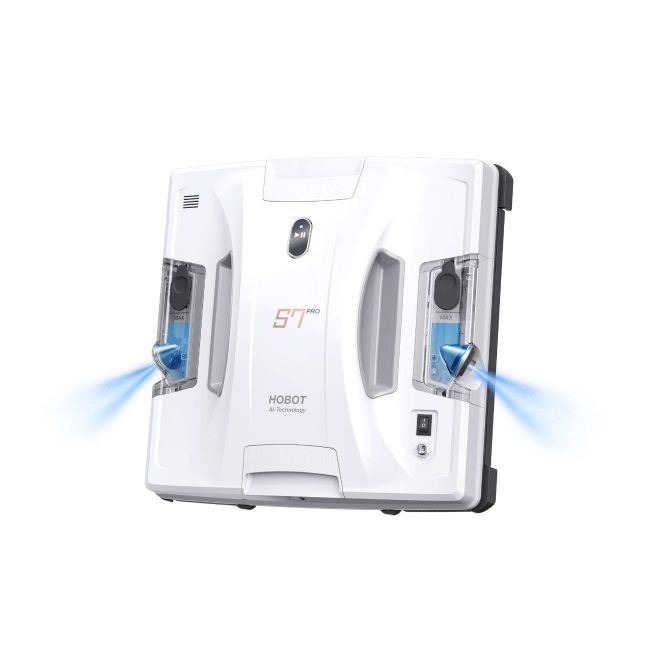 Dit nieuwe S7 PRO model van Hobot is uitgerust met twee geïntegreerde tanks, die elk een ultrasone sproeikop hebben. Hierbij wordt een fijne spuitnevel op het oppervlak aangebracht zodat er geen watervlekken ontstaan bij het reinigen met de ruitenreiniger.