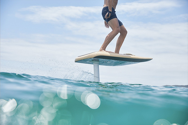 De "e" in eFoil staat voor de lithium-ionbatterij die in het bord is ingebouwd en die een elektromotor aandrijft met een propeller die voor voortstuwing zorgt. Onder de aandrijfeenheid bevindt zich een vleugel (of "folie") die voor lift zorgt. Bij voldoende snelheid genereert de vleugel voldoende lift om het board uit het water te laten komen en begin je moeiteloos voort te vliegen als een vliegend tapijt dat in poeder rijdt. Je stuurt het board door te gaan staan met je lichaamsgewicht en past je snelheid aan met een draagbare draadloze Bluetooth-afstandsbediening om het gaspedaal te bedienen. Het gevoel is uniek.