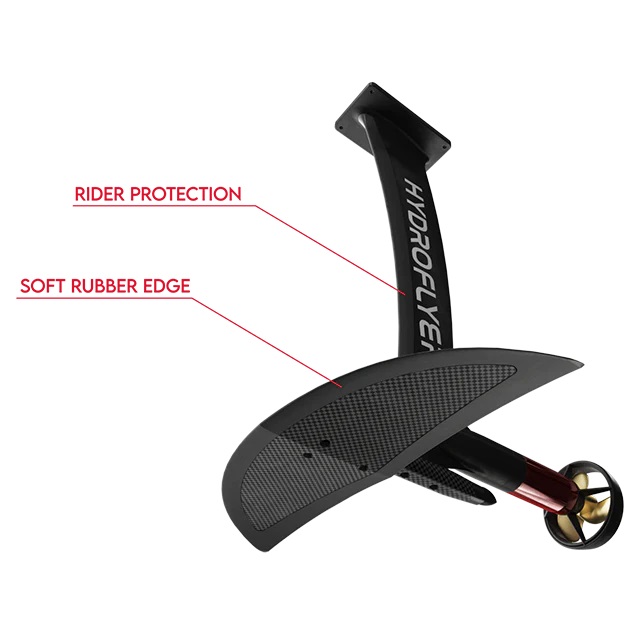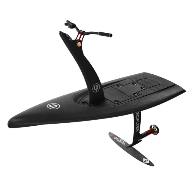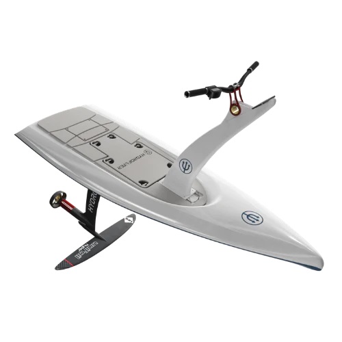 De HydroFlyer™ wordt bestuurd via een Bluetooth-controller die aan het stuur van de e-foil is bevestigd. De magie van de HydroFlyer™ die uit het water wordt getild, gebeurt zodra de rijder een snelheid van ongeveer 5-7 km p/uur haalt.