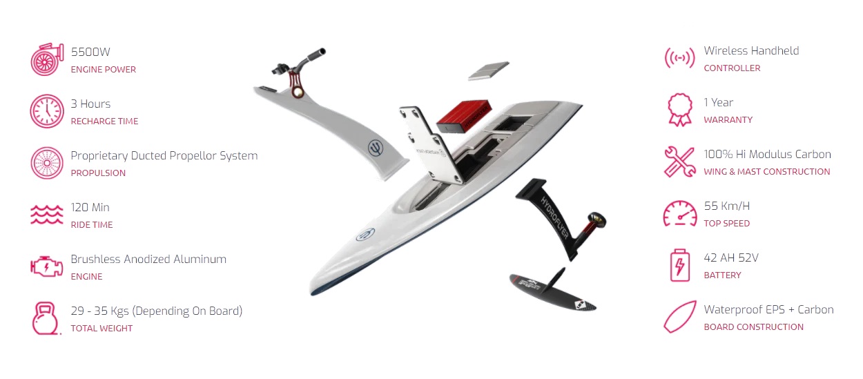 Een samensmelting tussen een hoverboard, een jetski en een surfplank, de HydroFlyer™ is de meest geavanceerde waterscooter ooit geproduceerd.