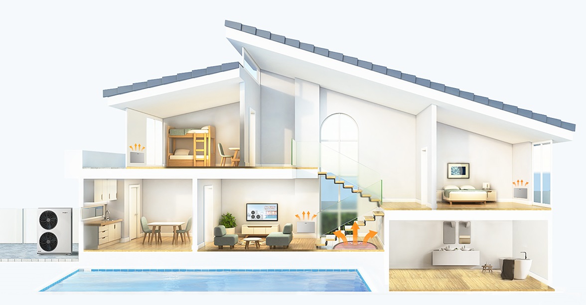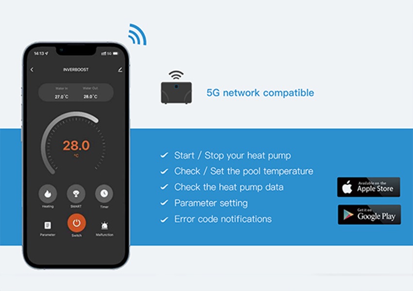 Dankzij de omkeerbaarheid kan hij water verwarmen of koelen en werken bij een buitentemperatuur van -20~43°C. De INVERBOOST UX zwembadwarmtepomp is dus perfect geschikt voor verwarming gedurende 365 dagen per jaar.