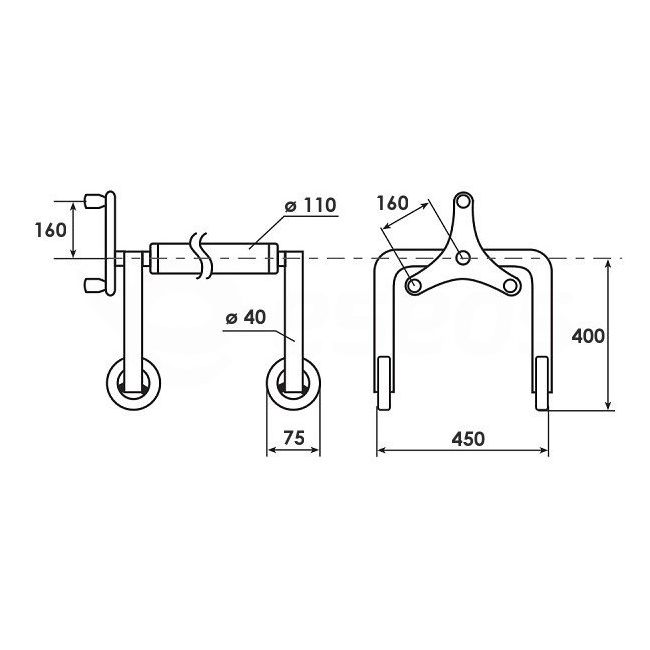 De afstand tussen de wielen is 450 mm, de hoogte van de telescopische stang vanaf de grond is 400 mm en de stang is extra versterkt met een diameter van 110 mm (standaard lieren zijn ca. 80 mm).