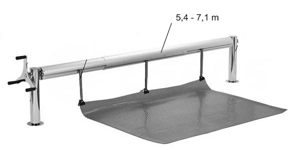 De brede steunpalen van 13 cm worden met pluggen vastgezet en zorgen voor een degelijke en sierlijke uitstraling aan de rand van het zwembad.Het oprolsysteem is geschikt voor afdekkingen van 5,40 - 7,10 meter breedte en 15 meter in lengte.