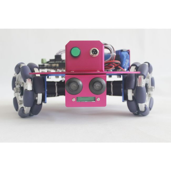 With three ultrasonic finder sensors, this starter robot kit is a mobile platform based on omni wheels for drive by DC motors with encoder. By using omni-directional wheels, this mobile robot kit can move in any direction at any angle without rotating beforehand. It is also a starter kit for learning and enjoying the features of omni directional movements.