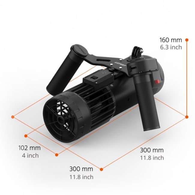 Met een gewicht van slechts 2,5kg is hij 50% lichter dan de gewone onderwaterscooters. Voor op reis betekent lichtgewicht meer lastvrij.