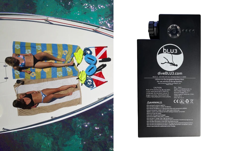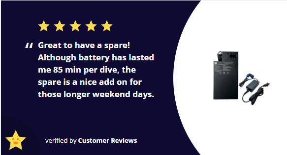 Een laadniveau-indicator bevindt zich direct op de batterij zelf, zodat u altijd uw batterijniveau weet. Zorg ervoor dat je een paar extra pakketten pakt, zodat je de hele dag kunt duiken.