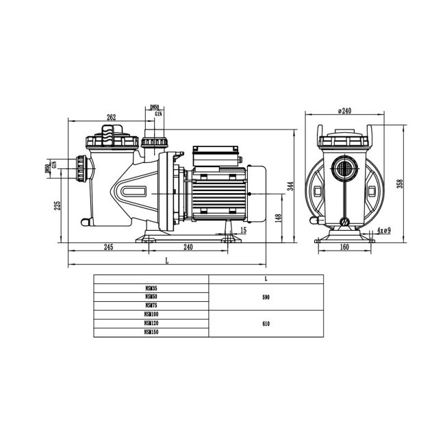 De NSM 50 wordt ingezet voor het circuleren van zwembadwater in een filterinstallatie en is geschikt voor binnen- & buitenbaden, natuurbaden en zwemvijvers. De pomp is zelfaanzuigend waardoor deze max. 2 meter boven of max. 3 meter onder het waterniveau geplaatst kan worden. Het verbeterde ontwerp van de koelwaaier en de koelwaaierkap zorgt voor een laag geluidsniveau van de pomp.