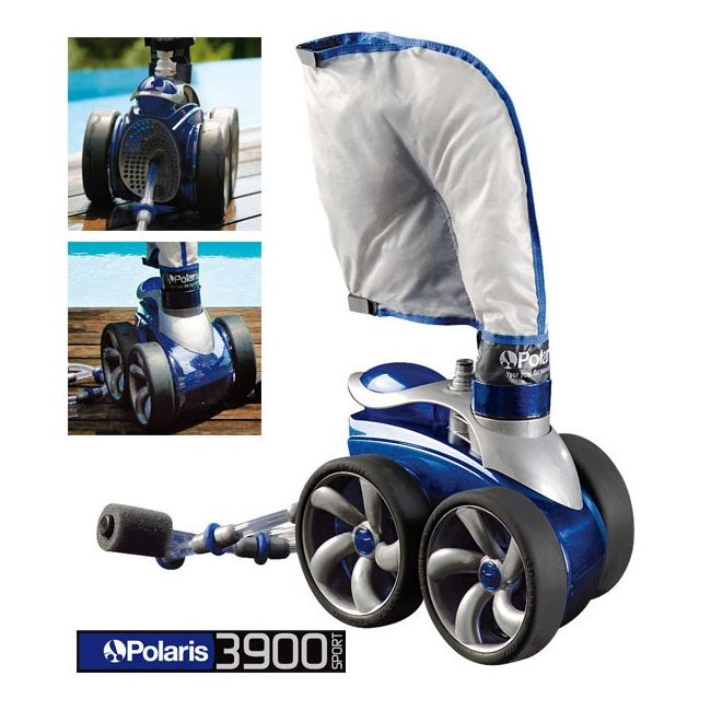 De nieuwe 3900 SPORT geniet het voordeel van 40 jaar Polaris research, die geassimileerd is met een volledig innoverend technologisch platform conform de laatste stand der techniek. Elk detail is een weloverwogen besluit geweest om zijn prestaties, zijn eenvoudig gebruik en zijn betrouwbaarheid te optimaliseren. Zijn Aqua dynamisch design maakt een extreme soepelheid van bewegingen mogelijk, gecombineerd met zijn willekeurige verplaatsingsmodus en met zijn gerichte jet, bestrijkt de 3900 SPORT het grootste oppervlak van het gehele gamma. Ongeacht de vorm van het zwembad, zelfs van extra grote afmetingen bereikt de 3900 SPORT al de zones. De 3 aangedreven wielen zijn voorzien van brede pneumatische Wide Trax® die hem 50% extra motorkoppel verschaffen. In combinatie met zijn automatische achteruitrijklep beschikt de 3900 SPORT over een maximale wendbaarheid en wurmt hij zich gemakkelijk uit de smalste zones. Dankzij 3 ultra krachtige jets, is hij voorzien van een krachtige aanzuiging die geen enkele kans geeft aan bladeren, zand, kiezels, insecten, enz. Zijn zweepdraad maakt het mogelijk de slechtst toegankelijke delen van het zwembad te reinigen. De 3900 SPORT maakt de afstelling eenvoudig aan de hand van een geïntegreerde vlotter en een snelle connectie van de wateraanvoerbuis. De vuilverzamelende filterzak van de 3900 SPORT biedt een dubbele capaciteit aan, 40% supplementaire berging en een verlengd gebruik. Voorzien van een sleepketting in roestvrij staal, van een afgesloten tandwielkast beschermd tegen stof, en van hoogwaardige kunsstoffen, garandeert de 3900 SPORT U een extreme betrouwbaarheid. De 3900 SPORT wordt geleverd met een bijkomende ultra fijne zak.