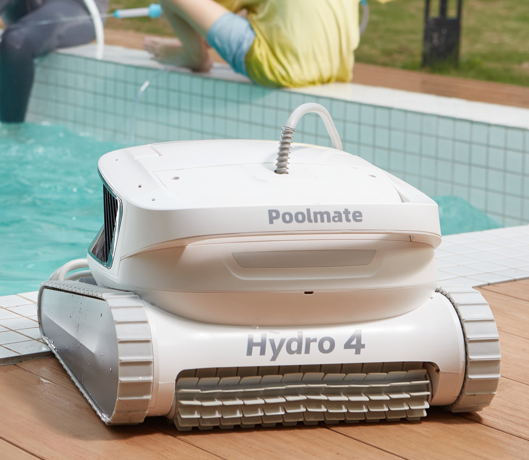 De Poolmate Hydro 4 is een innovatieve zwembadrobot. Dankzij de revolutionaire Al-Wireless- technologie kan hij tot wel 3 uur in automatische modus werken op een enkele lading.