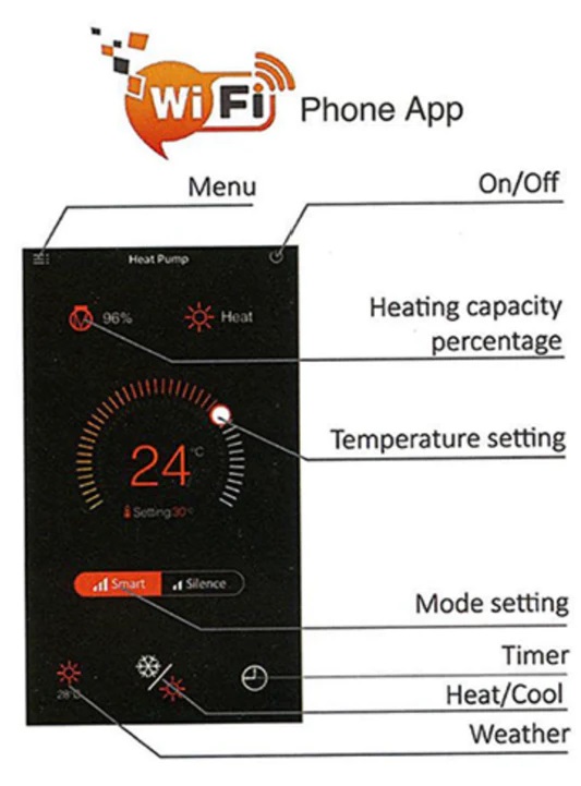 Om toegang te krijgen tot de externe configuratie van onze pomp, moeten we een app downloaden naar ons mobiele apparaat. Via het platform kunnen we parameters zoals het verwarmingspercentage, de huidige ingestelde temperatuur, de timer en de instellingen voor Smart Mode en Stille Activiteit aanpassen en controleren. De Poolstyle app voor het op afstand bedienen van de warmtepomp kunt u downloaden via Google Play en de App Store.