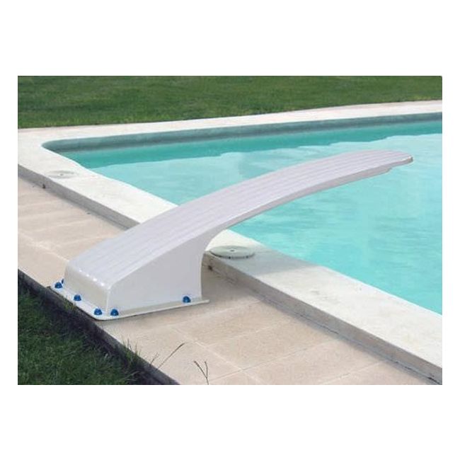 Brede flexibele lange duikplank, gemaakt van polyesterhars en glasvezel. Onaangetast door UV-stralen en weersinvloeden.