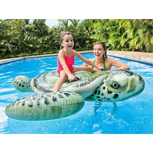 Heeft u thuis een zwembad maar heeft u nog steeds een tekort aan opblaasbaar speelgoed? Of bent u op zoek naar een zwemmaatje op uw vakantie aan zee? Je kunt genieten van veel plezier in het water met deze Intex Opblaasbare Schildpad, die er net zo uitziet als het echte werk. Deze mooie opblaasbare schildpad, gemaakt van hoogwaardig UV-bestendig vinyl, zal zeker vreugde brengen aan kinderen van alle leeftijden. Het beschikt over twee stevige handgrepen voor meer stabiliteit op de schildpad. Geniet van uren en uren zomerplezier met deze opblaasbare schildpad.