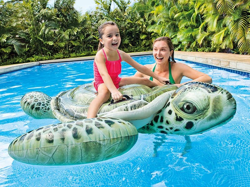 Deze opblaasbare schildpad is een geweldige metgezel in het water.