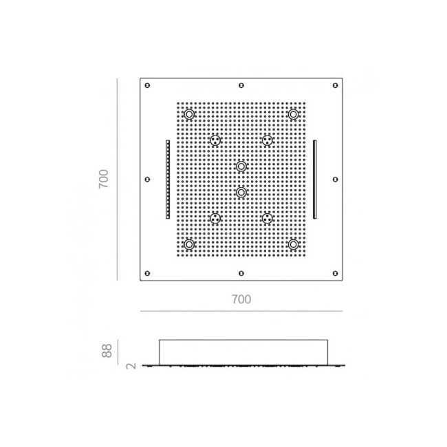 Daarnaast geschiedt de bediening middels 1 knop om handmatig te starten. Het beschikt ook over 6 LED-spots met chromotherapie, RGB verlichting.