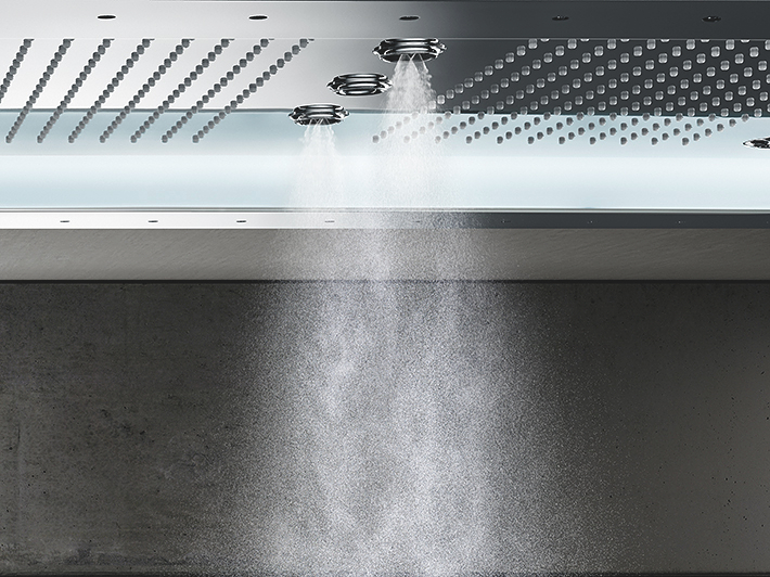 Dit is de Rain Spray. Sluit je ogen. Een zachte zomerregen valt neer als zachte druppels. Voel je het? Het maakt je hoofd net zo goed leeg als dat het je lichaam reinigt en creëert een moment om na te denken.