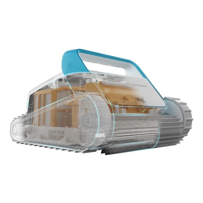 De zwembadrobot reinigt effectief de zwembadbodem, wanden en waterlijn met elk type afwerking tot 15 meter in lengte.