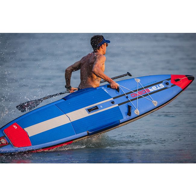 Met zijn beperkte breedte (28 cm) vereist hij enige ervaring om zijn stabiliteit te vinden. Gebaseerd op de waarneming dat hoe langer het board is, hoe beter het zal glijden, democratiseert Starboard de SUP-race; ontworpen voor één persoon, dit board gaat met ongelooflijk gemak het water op en brengt je verder en sneller dan enig ander.