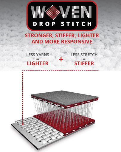 Na 5 jaar onderzoek en ontwikkeling presenteert Starboard de volgende evolutie in opblaasbare boardtechnologie. Geweven technologie bespaart gewicht zonder aan stijfheid in te boeten omdat er minder materiaal wordt gebruikt. De koorden zijn diagonaal gespannen, wat bedoeld is om meer spanning vast te houden voor een nog stijver board. Dankzij deze technologie is het board 1,5 kg lichter. Merk op dat de materiaalvermindering de milieu-impact van de plaat met 10% vermindert.
