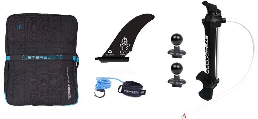 Dit SUP Starboard wordt geleverd met een praktische draagtas voor efficiënte opslag. Bijzonder licht en praktisch, deze draagtas van gerecyclede flessen is geschikt voor peddels van verschillende afmetingen. Ook inbegrepen is de enkel- en dubbelwerkende hogedrukpomp van Starboard, die bijzonder gemakkelijk te gebruiken is. Tot slot maakt een elastische riem het pakket compleet. Ook geleverd met de vin(nen).