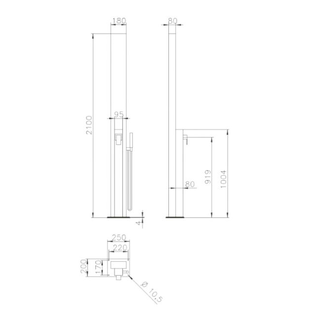 De halfhoge, gepolijste roestvrijstalen kolom zorgt voor een elegante designcombinatie, terwijl de vierkante handdouche het geheel compleet maakt.