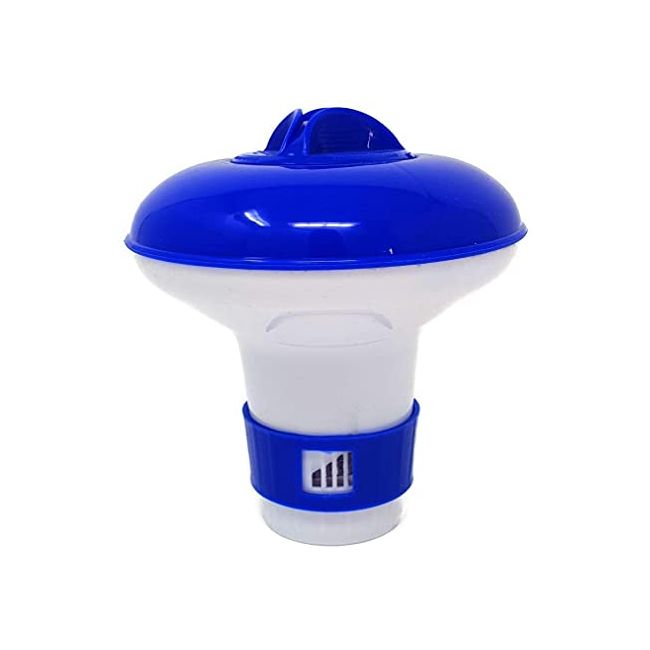 Drijvende chloordispenser. Het maakt het mogelijk om de dosering van de tabletten te doseren en heeft een lagere ring om de hoeveelheid product nauwkeuriger te regelen.