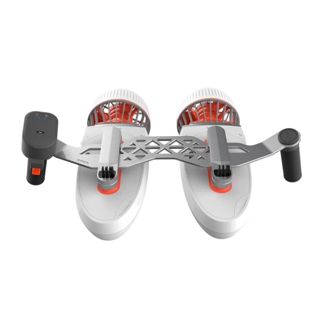 Met het verwisselbare ontwerp van WhiteShark Tini Double-Engine Support Handle kun je twee WhiteShark Tini-scooters combineren. Door twee WhiteShark Tini-scooters aan te bevestigen, kan de duiker door het water manoeuvreren, waardoor het 's werelds snelste scooter op de markt is.