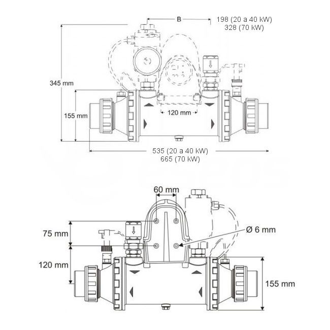 Technische gegevens van de Zodiac Heat Line Titan - 40 kW met regeleenheid en pomp: