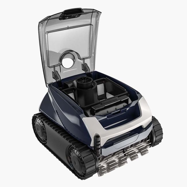 Deze zwembadrobot met filtersysteem is uitgerust met een fijne filter van 100µ van 4 liter en is via de bovenzijde te bereiken.