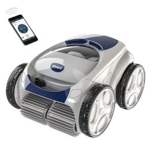De robot bodemzuiger is een automatische elektrische bodemzuiger welke van stroom moet worden voorzien en die dus niet wordt aangesloten op uw zandfilterinstallatie. Deze robot bodemzuigers hebben een eigen filter en een eigen opvangbak voor het vuil. Deze robot bodemzuigers zijn er in verschillende uitvoeringen en verschillende kwaliteiten. Waar een automatische bodemzuiger enkel de bodem schoon houdt kan een een goede robot bodemzuiger ook de zijwanden en de romeinse trap van uw zwembad schoonhouden, zonder dat u er enig omkijken naar heeft. Ook als u voor een lange tijd van huis bent zijn er robots verkrijgbaar met een weektimer. U stelt eenvoudig via een APP de dagen en tijden wanneer de robot moet schoon houden. Met zijn zuigkracht en ronddraaiende borstels zorgt de robot voor een schoon zwembad. De roterende borstels brengen daarnaast het water in beweging wat zorgt voor een verbeterde verdeling van chloor en chemicaliën. Jouw zwembad wordt op deze wijze nog beter schoongemaakt. Een goede zwembadrobot zijn bijvoorbeeld de:
